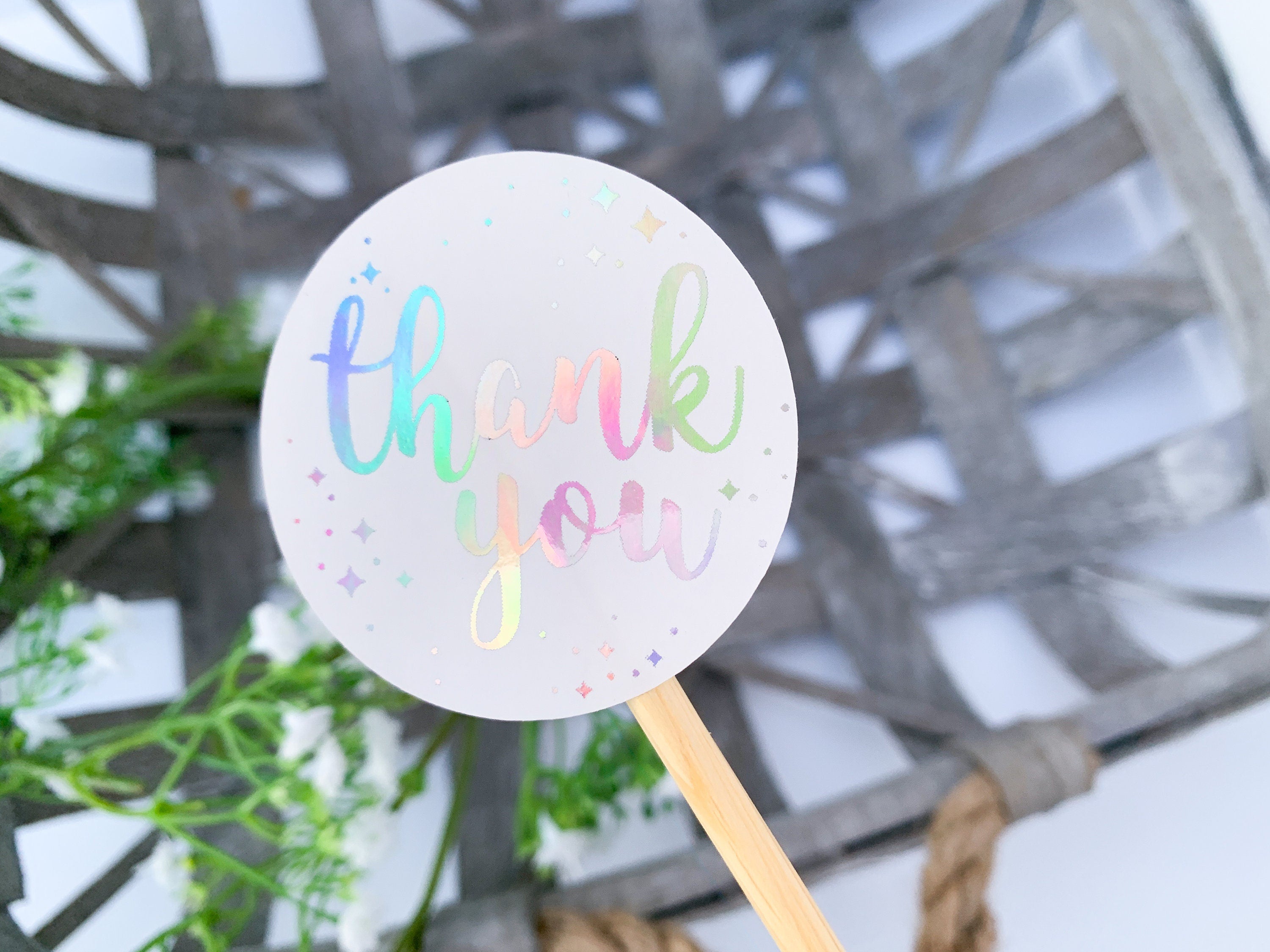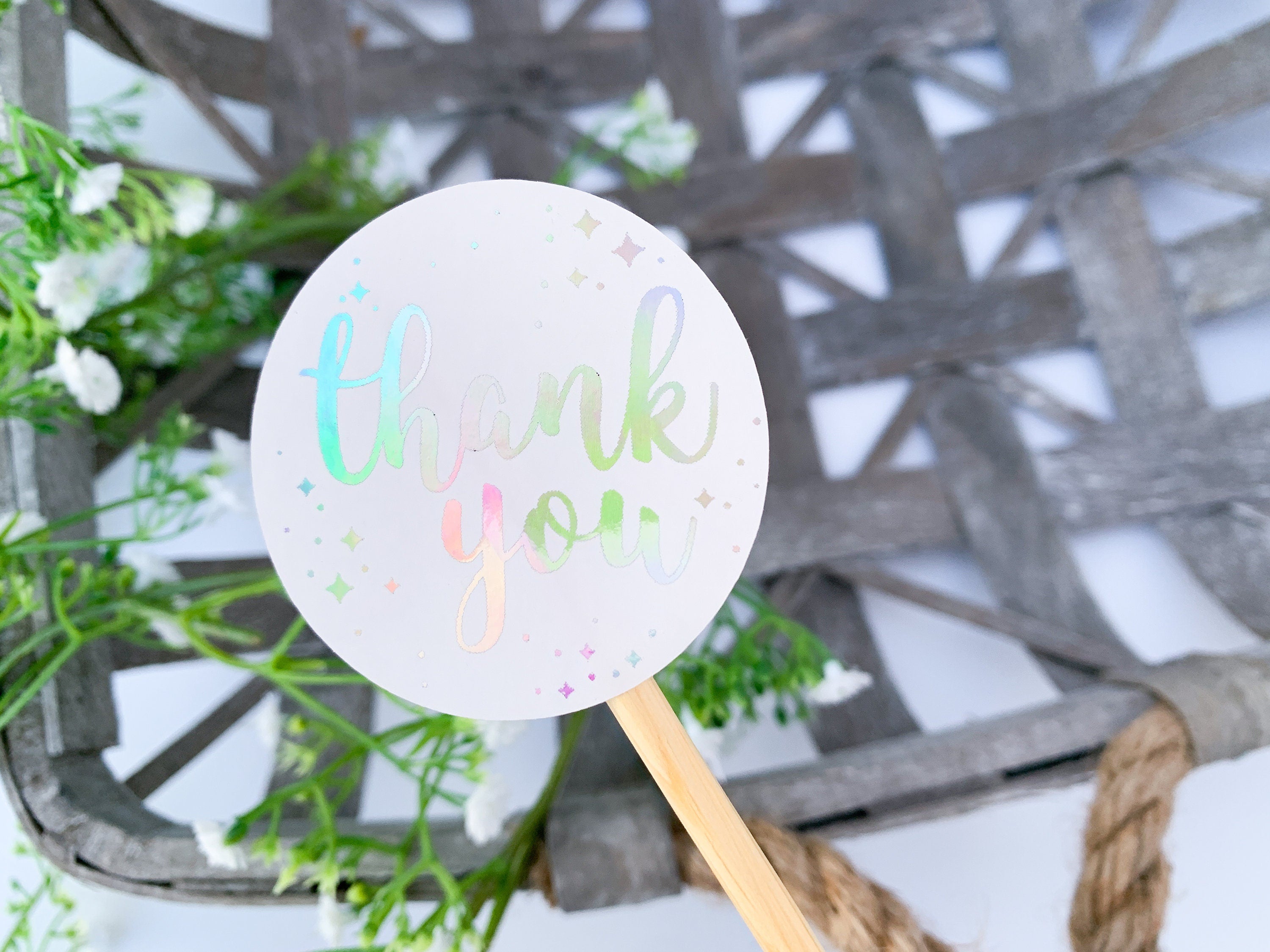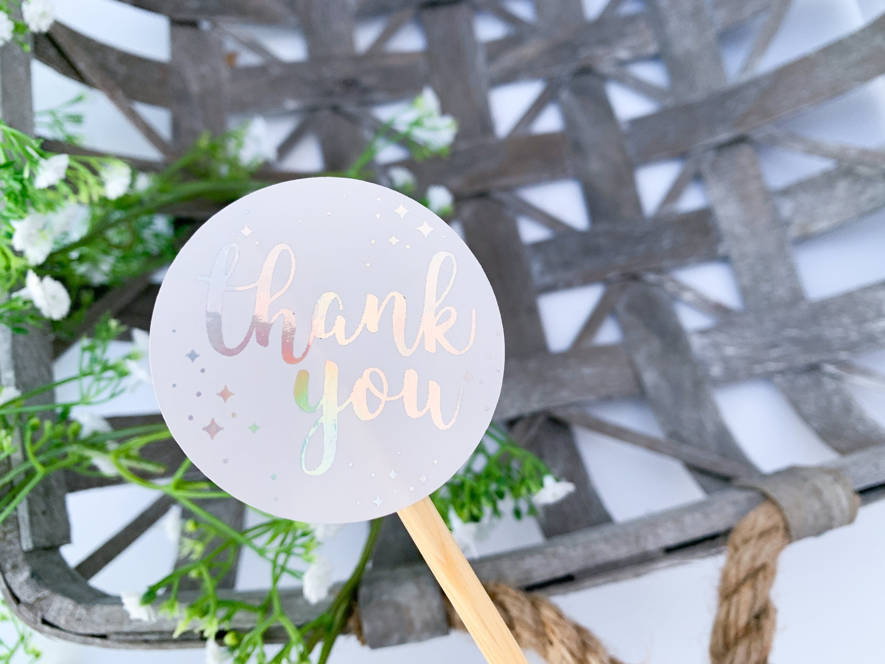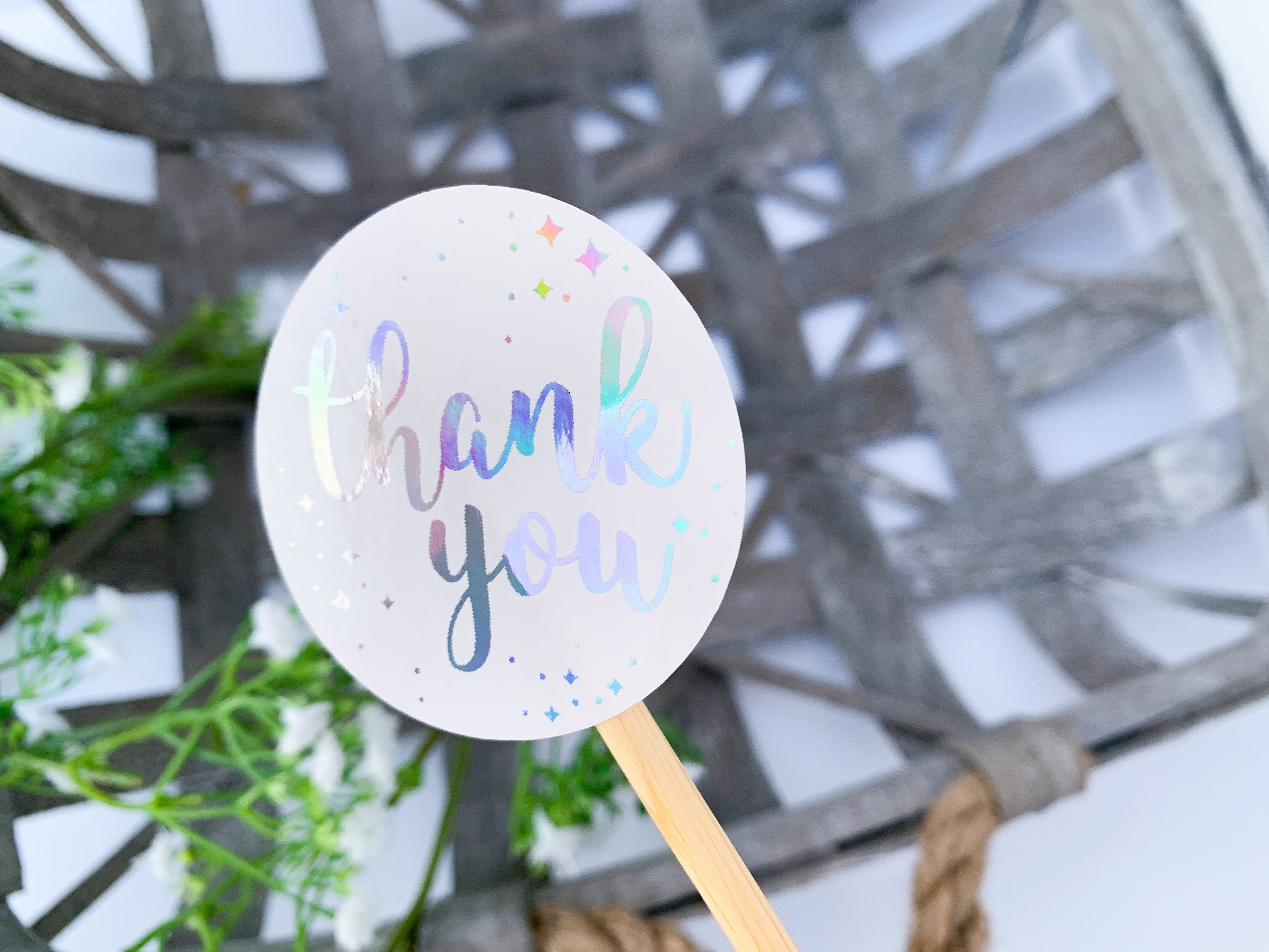 Up your packaging game by adding these simple thank you stickers! These foiled stickers look great on product packaging, envelopes, or boxes!