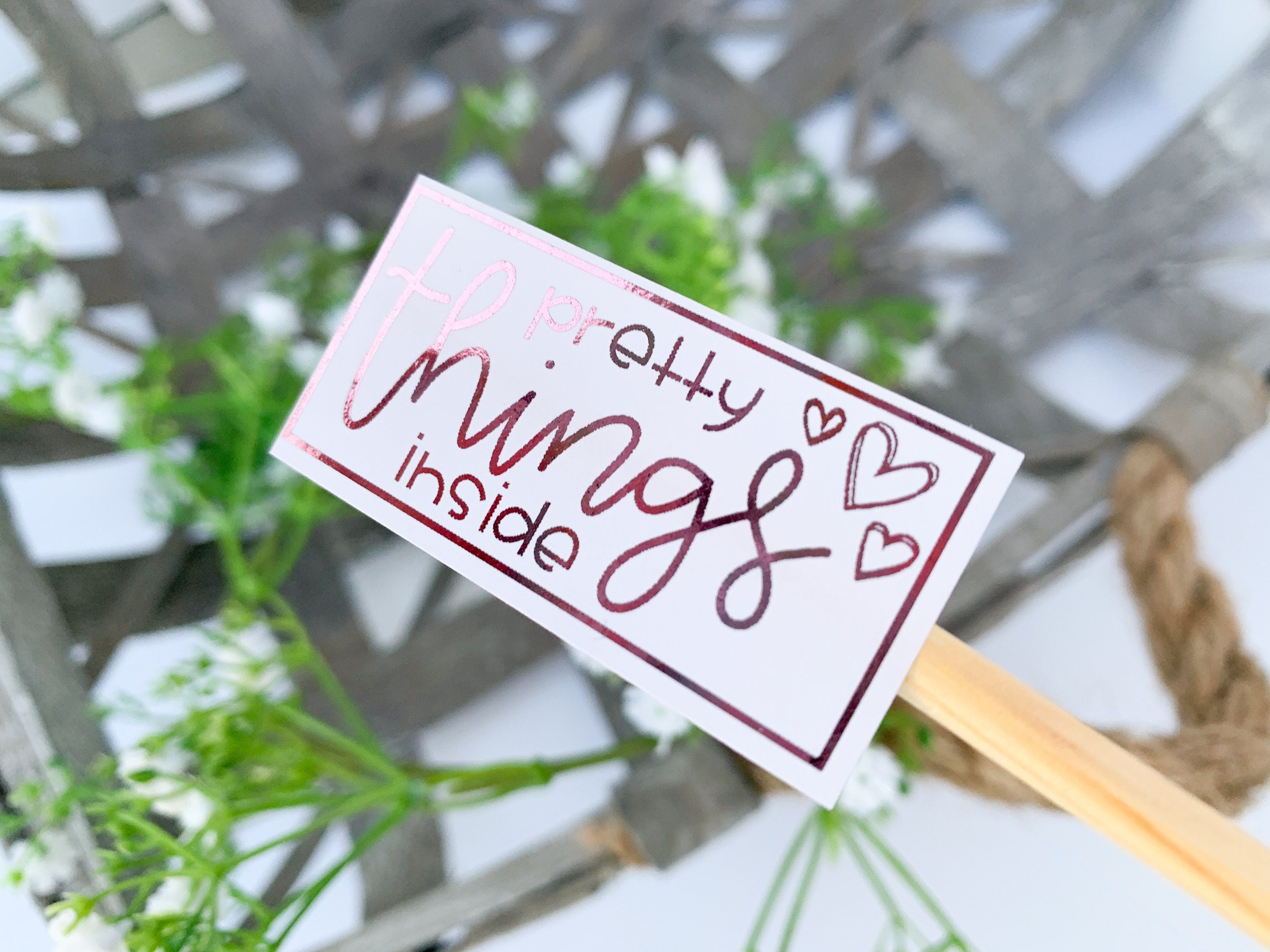 Foiled - Pretty Things Inside Rectangle Sticker, Cute Fun Business Packaging, Etsy Shop Sticker, Happy Mail Small Business, Small Shop