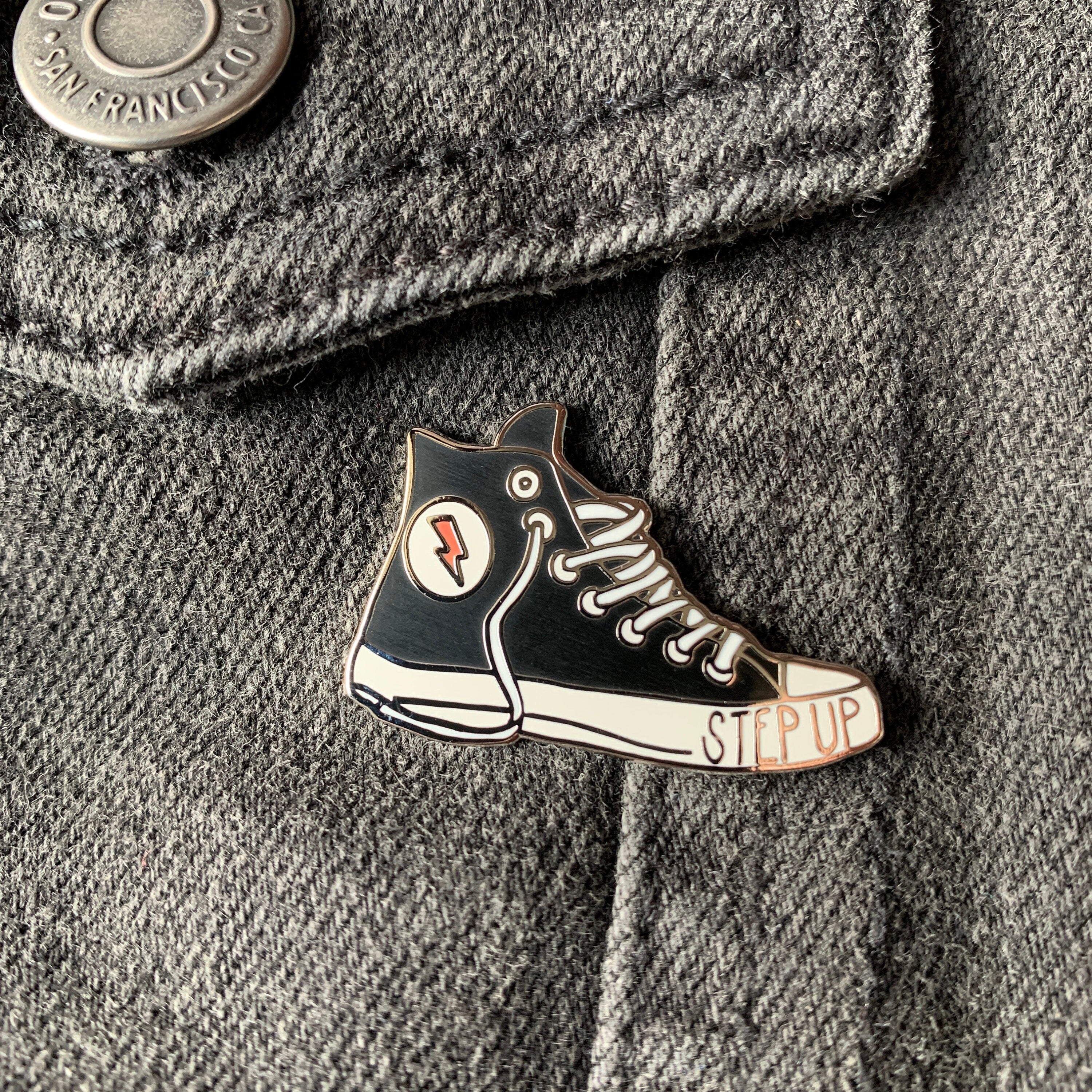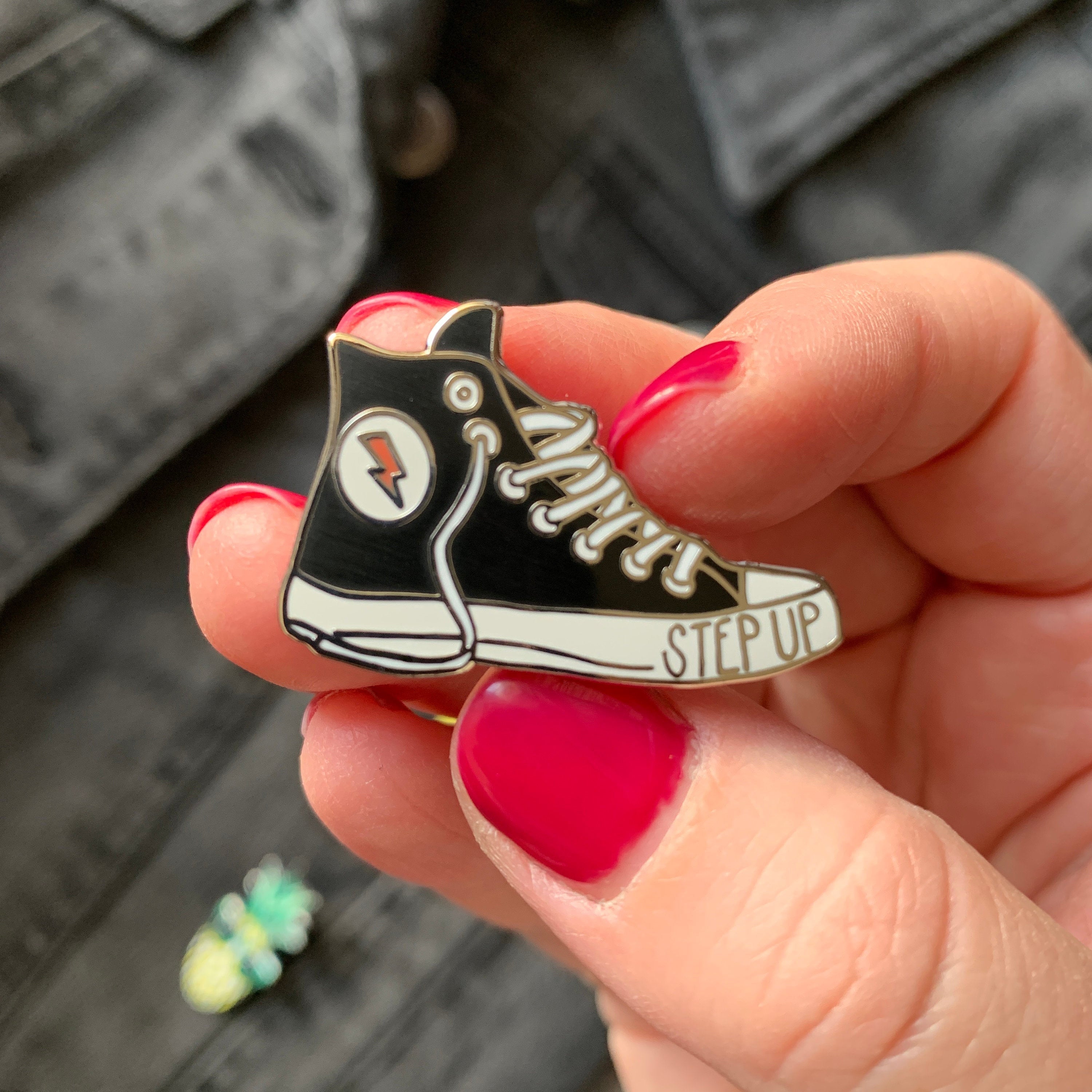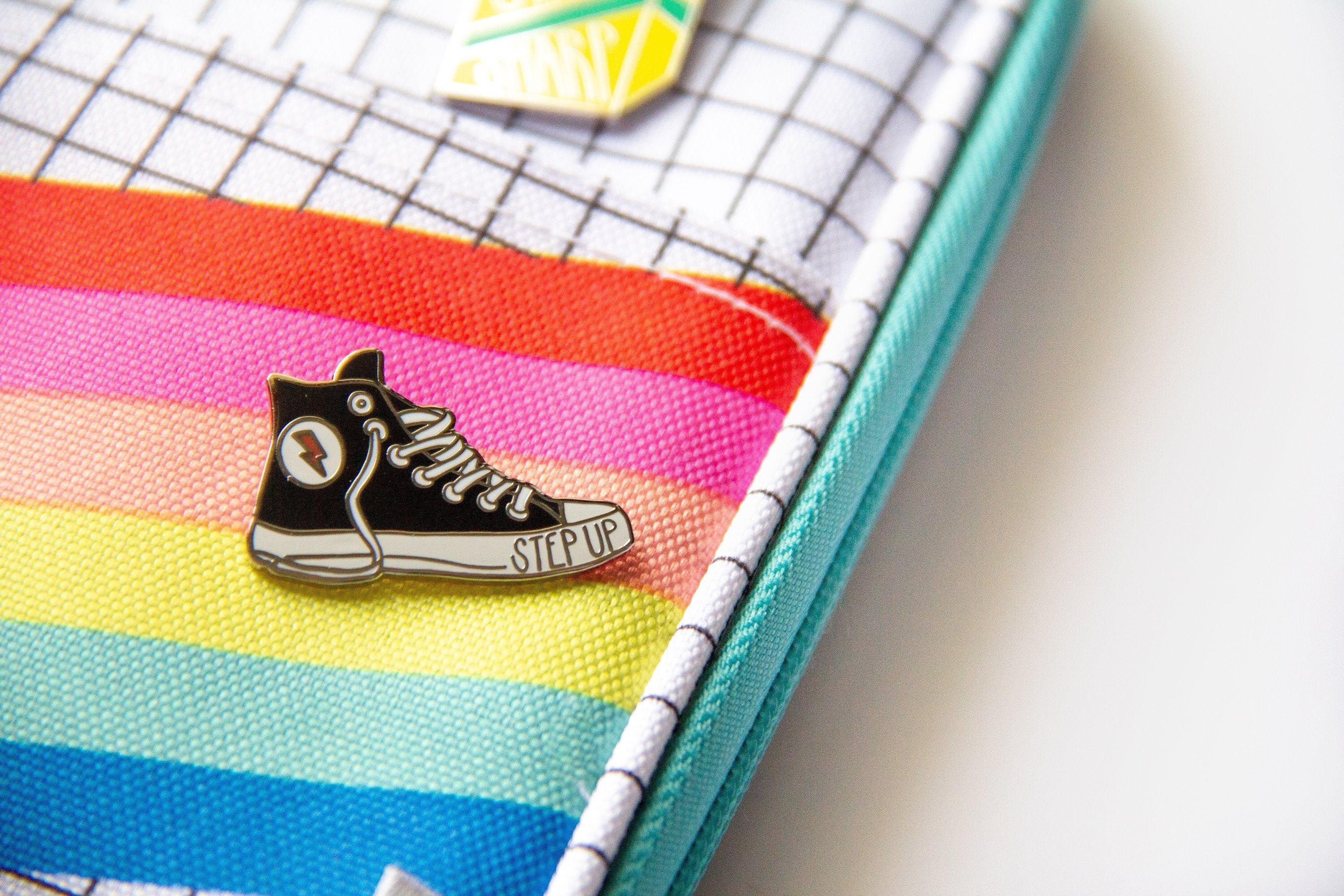 "Step Up" high-top shoe hard enamel pin - from my "Class Notes" Enamel Pin collection! These fun and uplifting pins will remind you to always do your best! Great for kids, students, and adults! These would be a great gift!