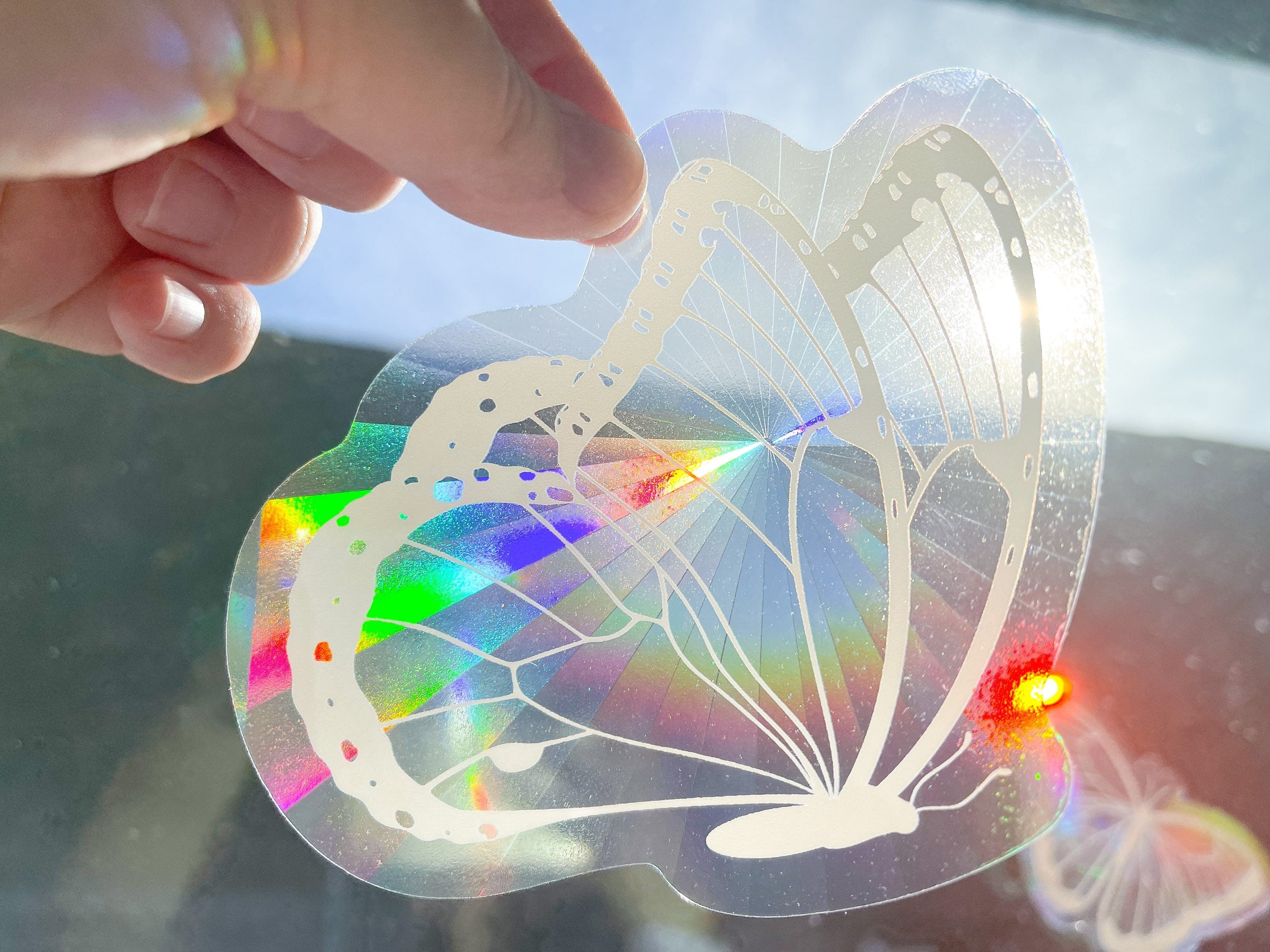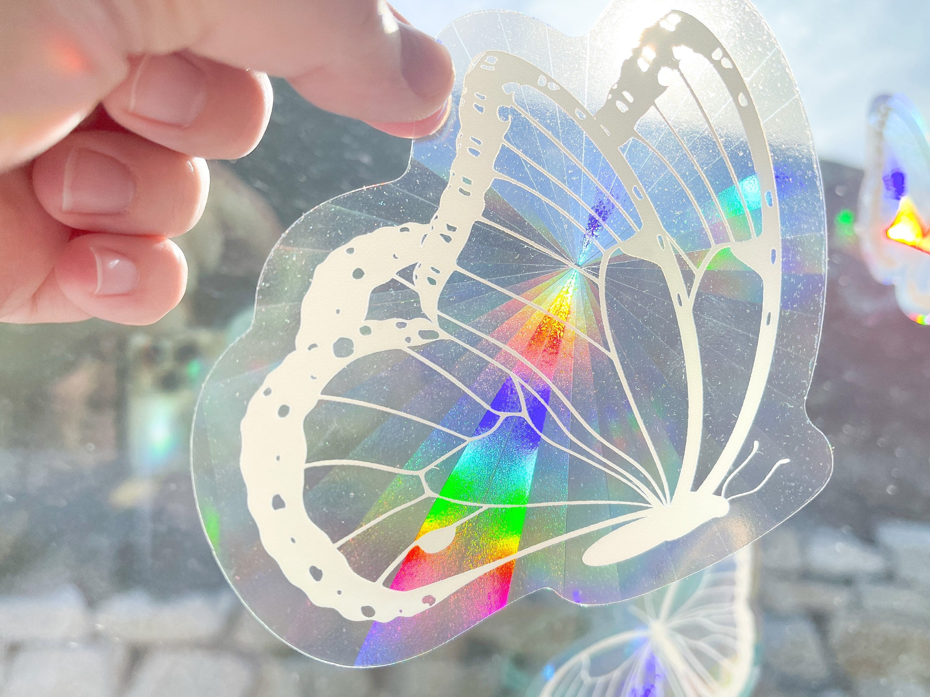 Monarch Butterfly Sun Catcher Sticker, Cute Rainbow Throwing Window Sticker, Fun Room Dorm Decor, Gift for Her, Valentines Day Gift for Kids