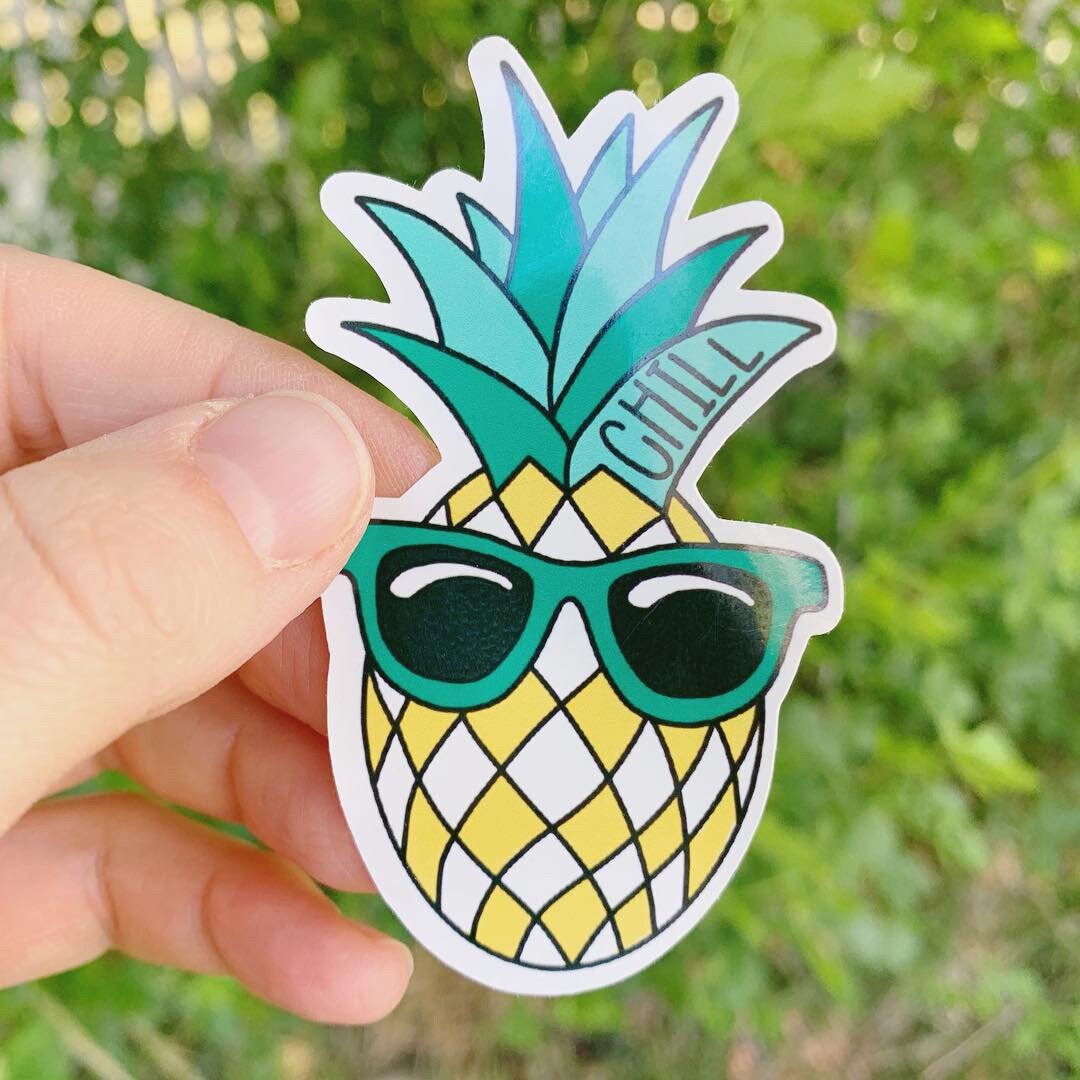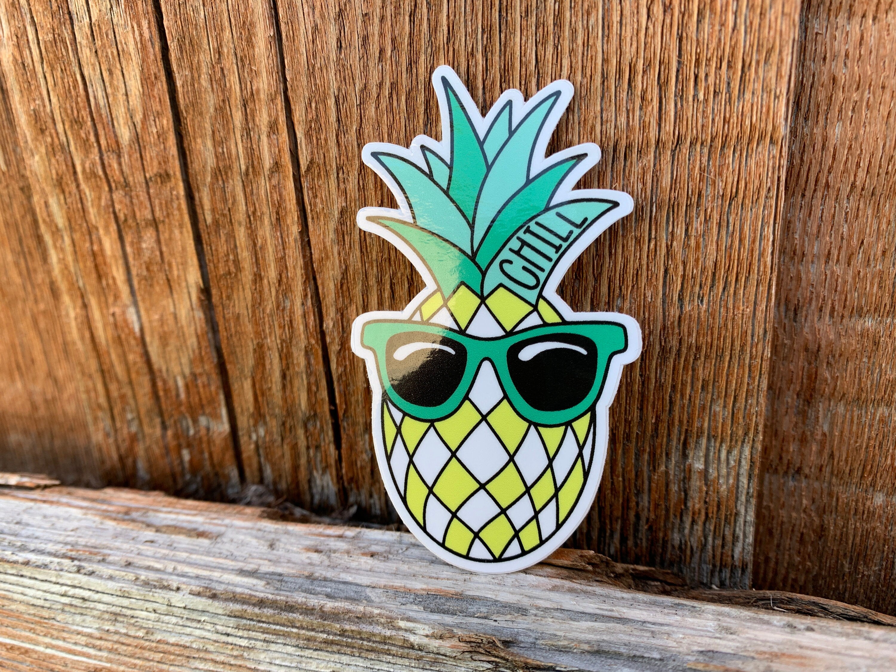 Cool Pineapple sticker wearing sunglasses with a word we all need to follow: CHILL
