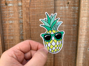 Pineapple Sticker, Yellow Pineapple with Sunglasses, Uplifting, Positive, Motivational Sticker Pack, Pineapple Gift, Laptop Sticker