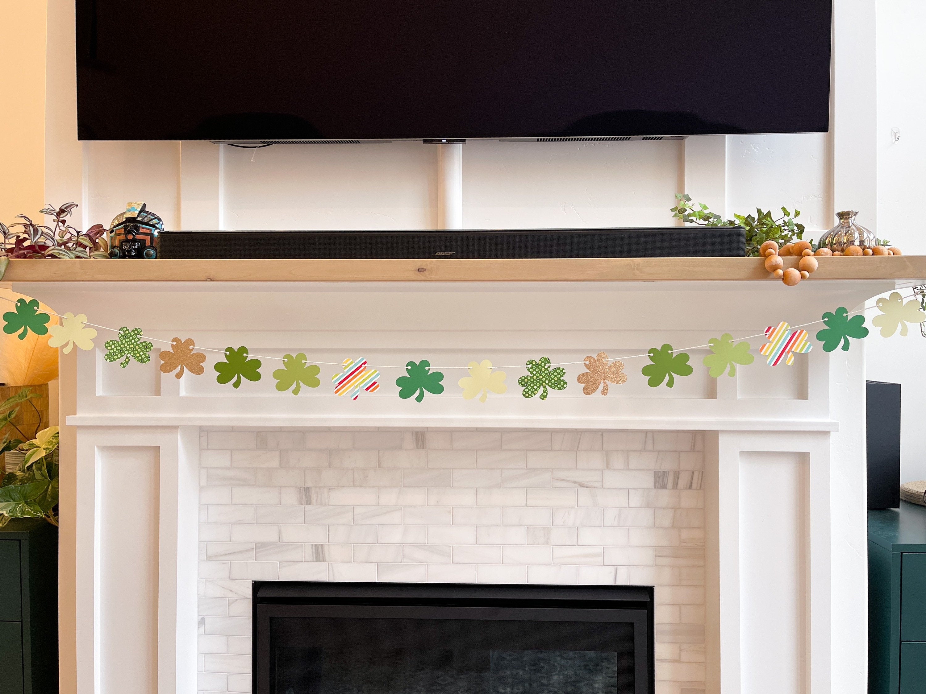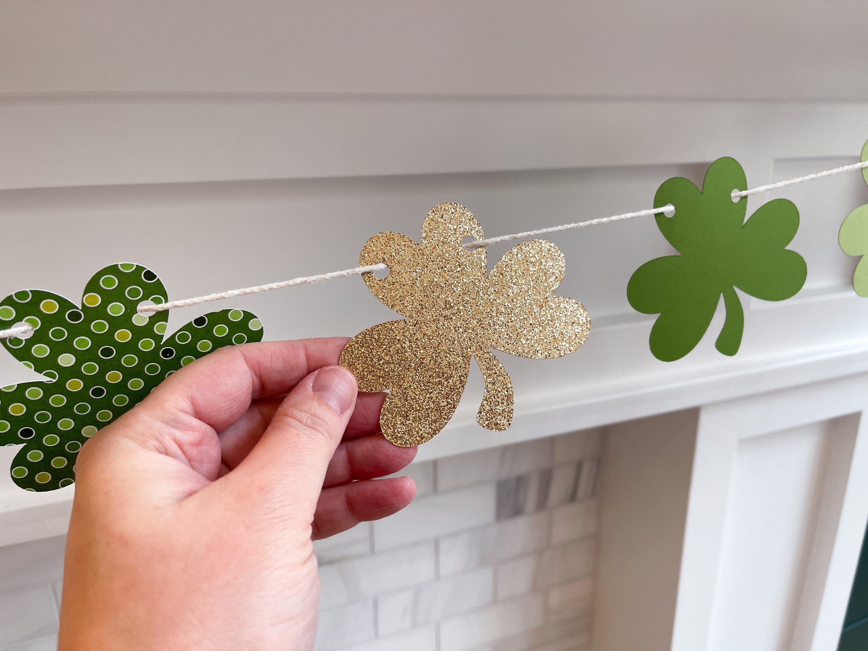 Ready to Ship Shamrock St Patrick’s Garland, Lightweight Garland for Mantle, Clover March Decor, Paper and Twine, Simple Home Decorations