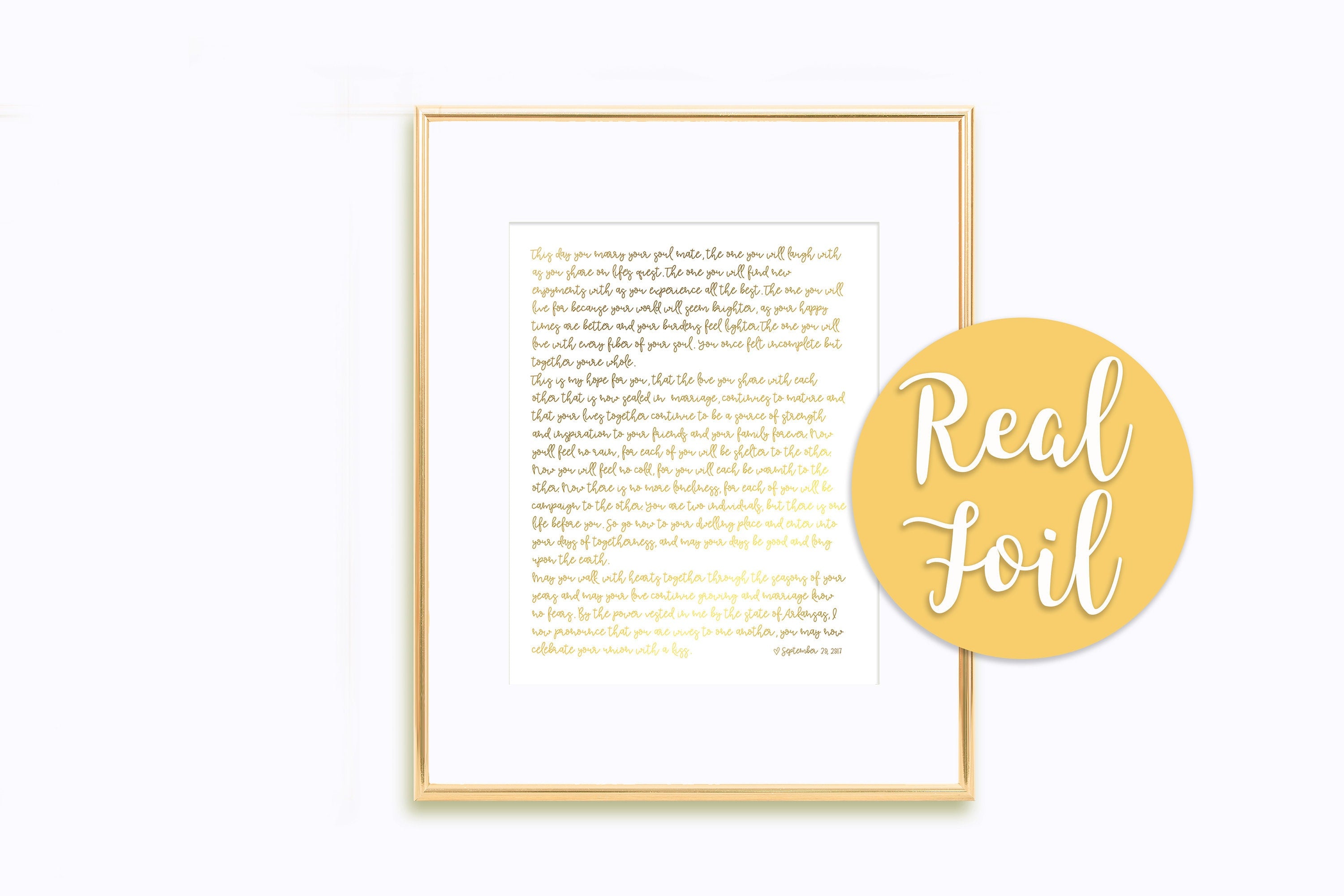 Real Foil - Custom Wedding Vows Print, First Dance Wedding Song Lyrics Art, First Anniversary Paper Gift, Personalized Valentines Day Gift