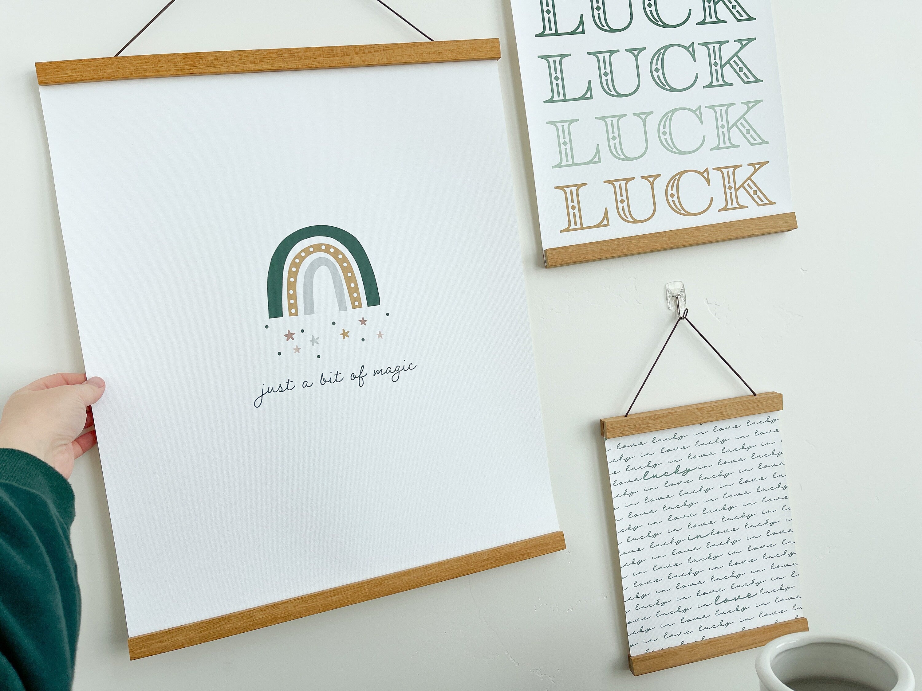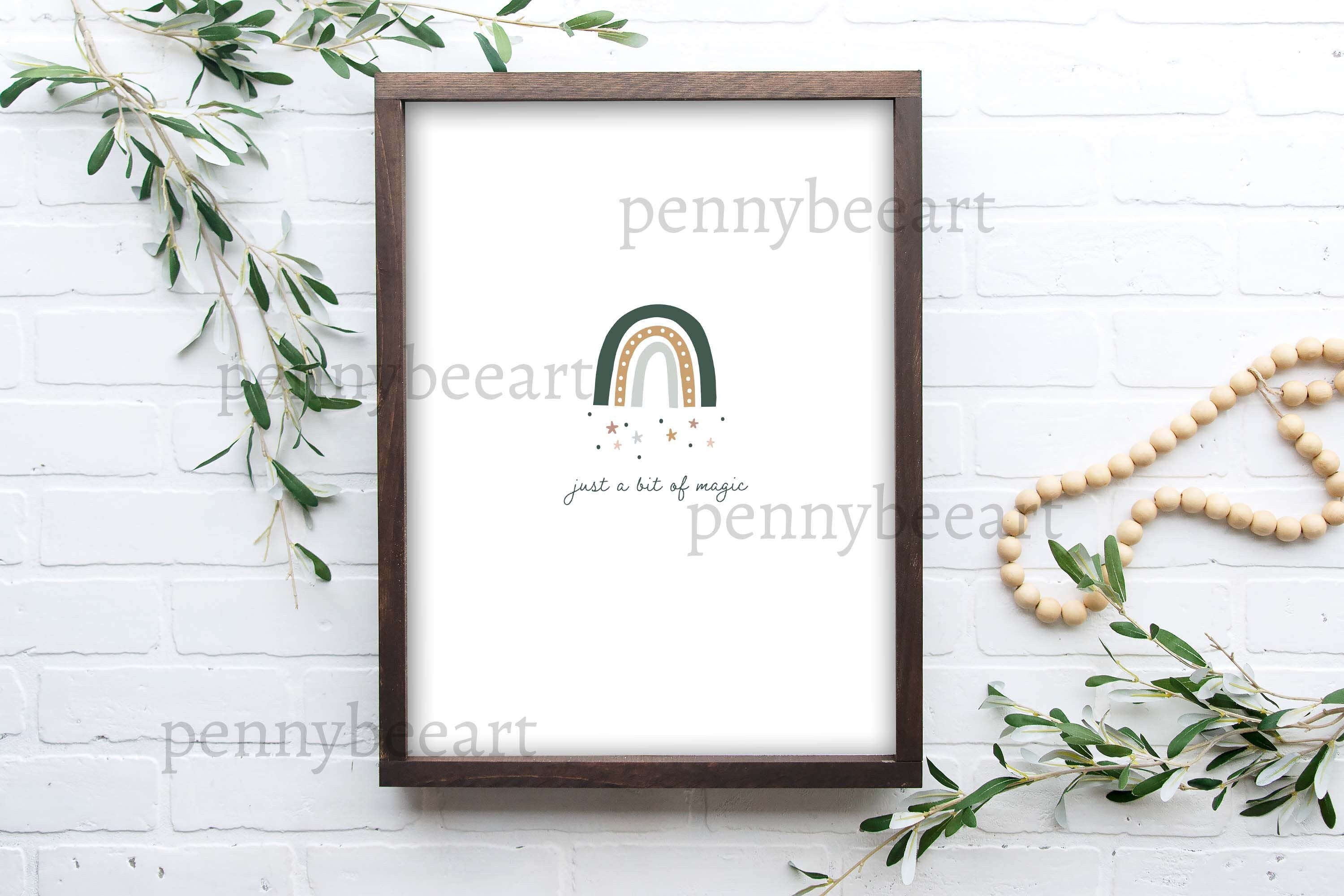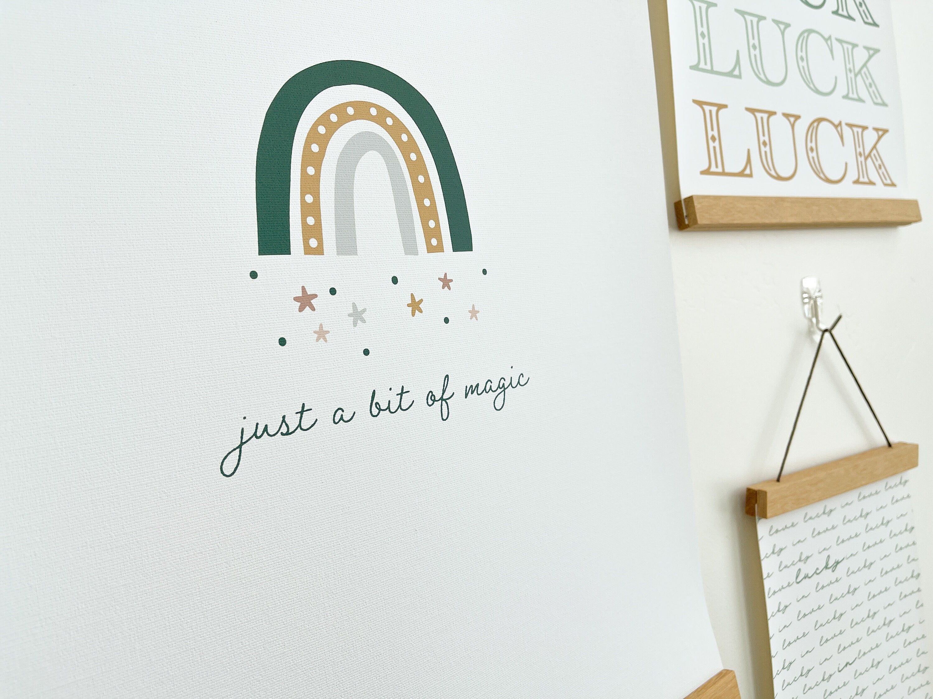 Introducing my St. Patrick's Day poster prints, the perfect addition to your minimalist home decor collection. Design includes a cute simple rainbow with a boho vibe with the text "just a bit of magic".