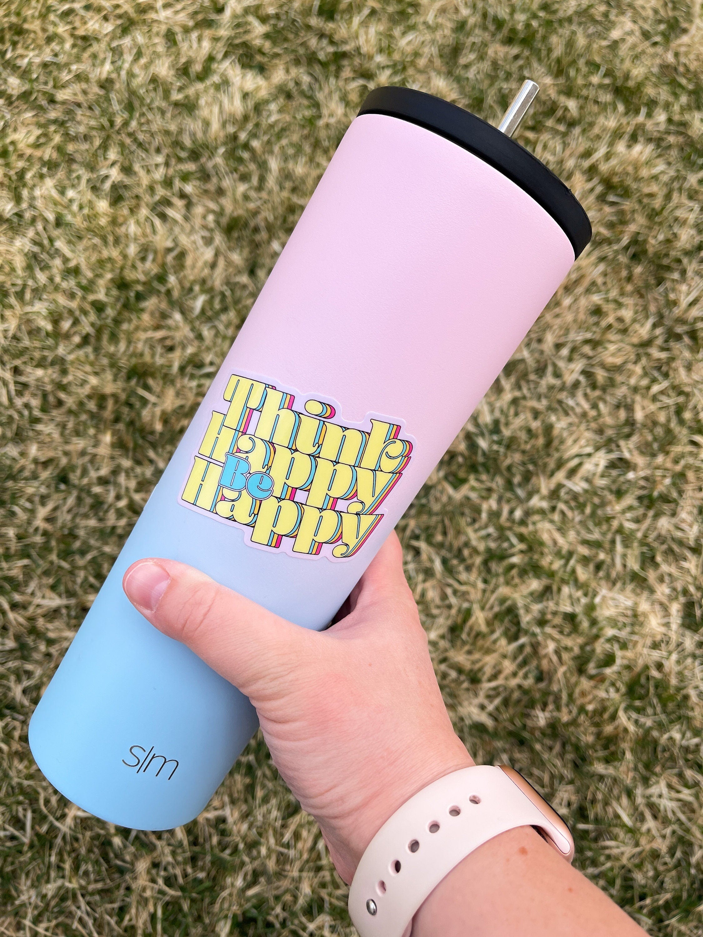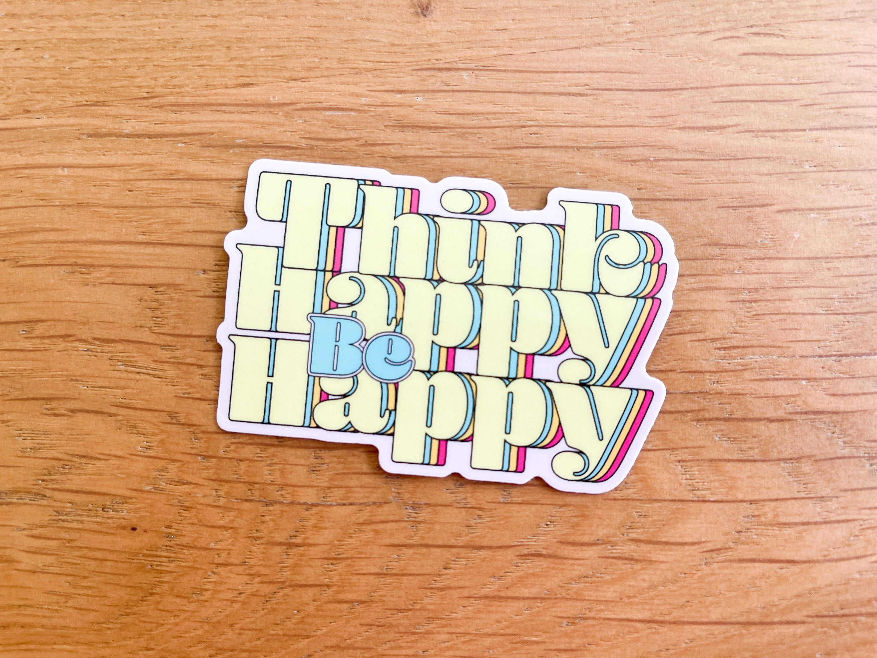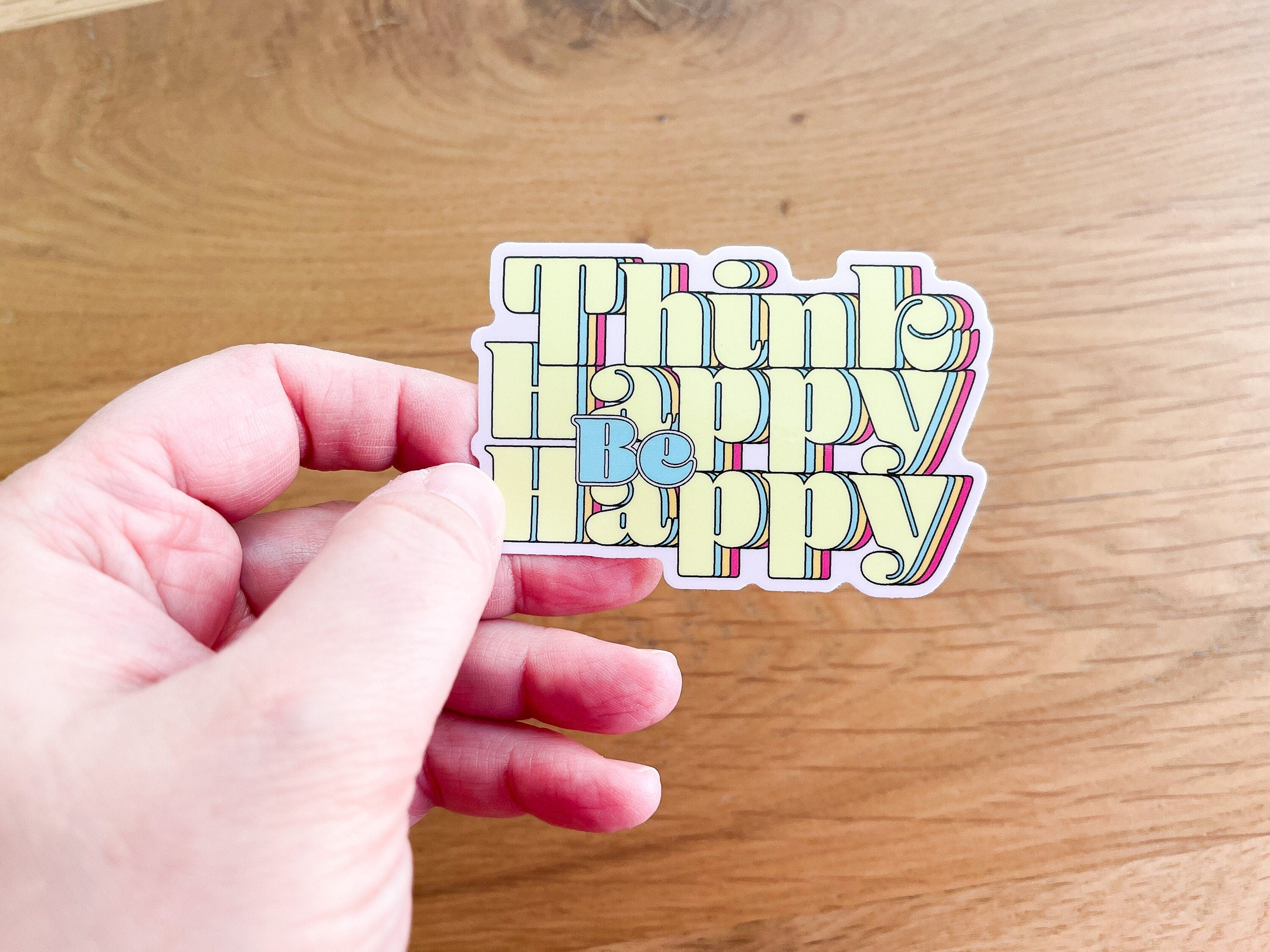 Think Happy Be Happy Sticker, Retro Font Style Sticker, Laptop Decal, Water Bottle Sticker, Vinyl, Waterproof, Cute Sticker Pink Blue Yellow